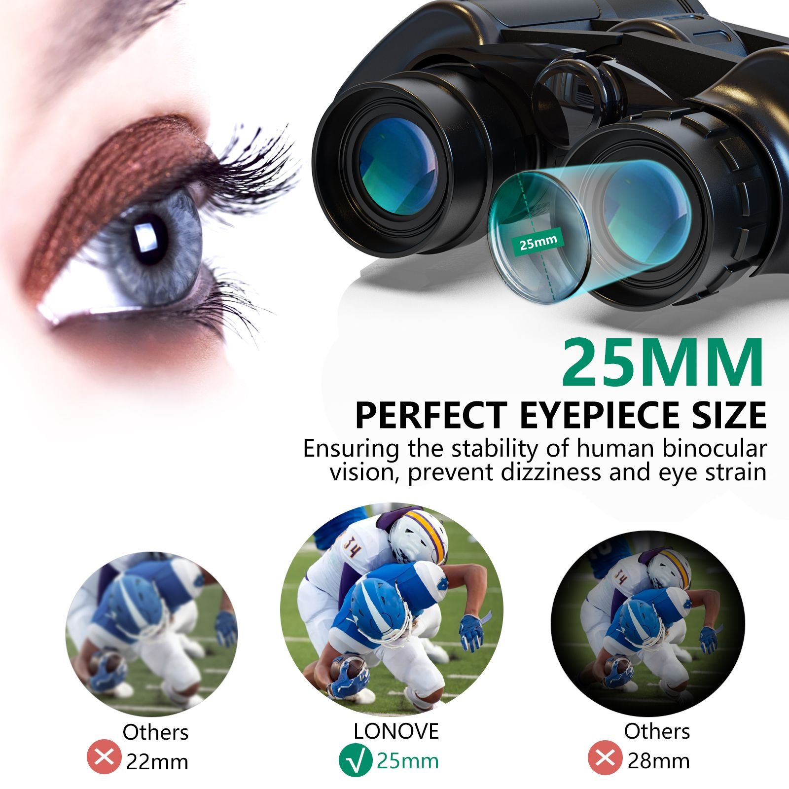 1.Professional/Powerful/Compact Binoculars : Designed with 20X high power magnification,50mm objective lens, provides wider field of view at 1000 yards large field of view good for fast moving subject, are ideal for bird watching, concerts, football game,climbing, hiking, driving, watching wildlife an