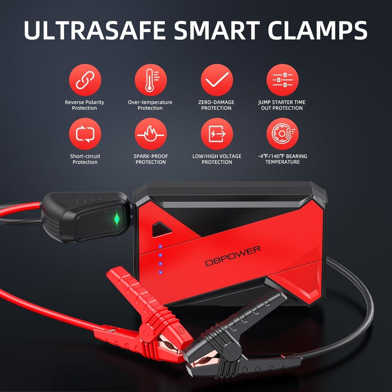 1.POWERFUL AND RELIABLE: Upgraded Powerful 1000A peak current can start most vehicles with gas engines up to 7.0L or diesel engines up to 5.5L. It meets the needs of most cars, SUVs, Motorcycle, Lawn Mower, and trucks